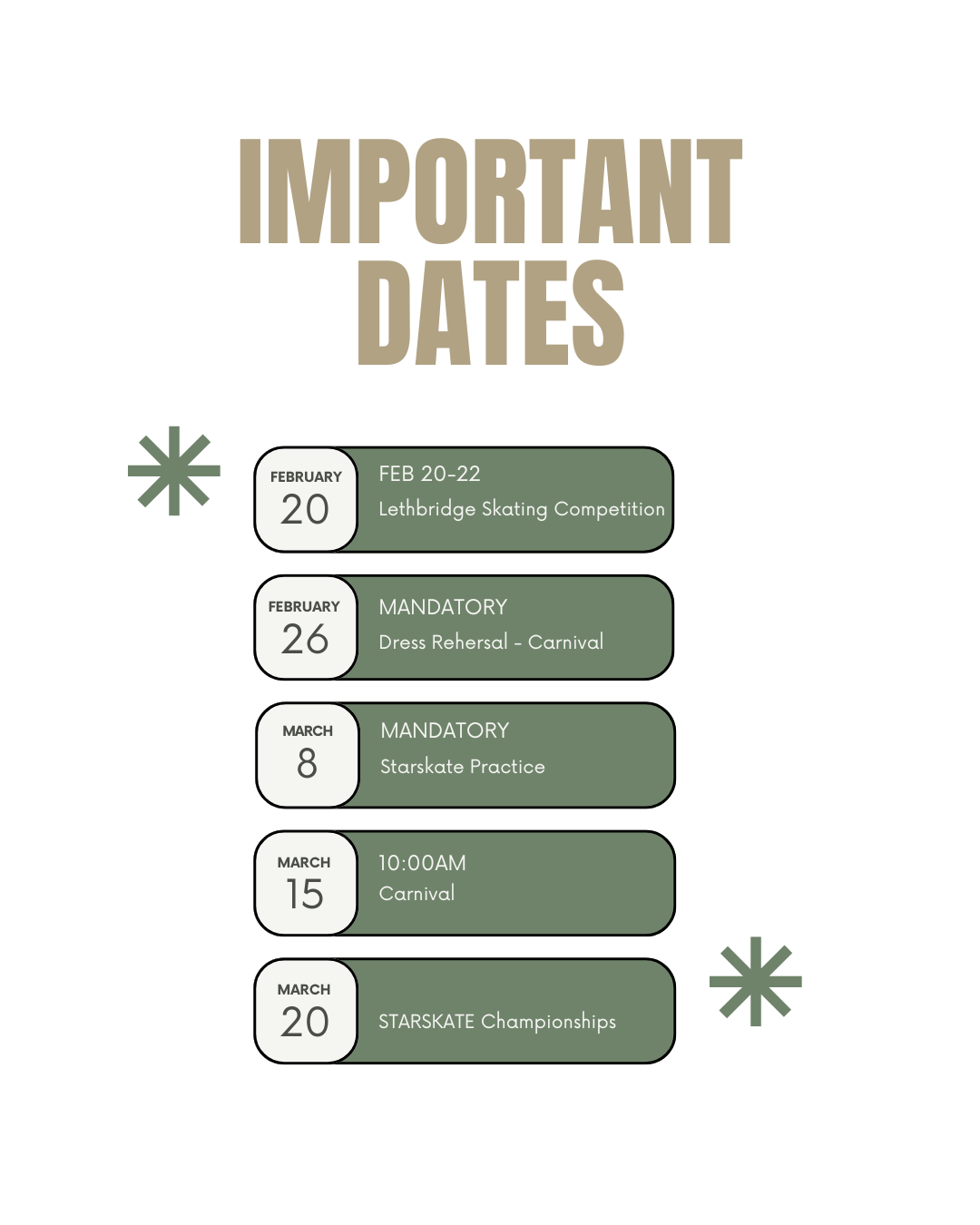 - Important dates